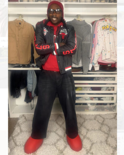 This fit came together so flawlessly it almost felt predestined. Sports-driven streetwear, layered with some of the boldest statement pieces, tied together by the iconic Chicago Bulls colorway, it was pure magic. A chef’s kiss moment, through and through.