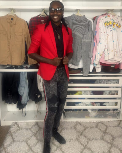 Now, don’t get it twisted, the red blazer actually belongs to these shorts. But I knew the fit would hit harder if I separated the pieces instead of turning it into a standard short-suit set. A blazer with a button-down and matching shorts would’ve felt too predictable, even a little flat. By holding the blazer back, leaning into the suspenders, and finishing with black-and-white sneakers, I was able to keep the vibe fun and casual while still sneaking in those business-inspired details.